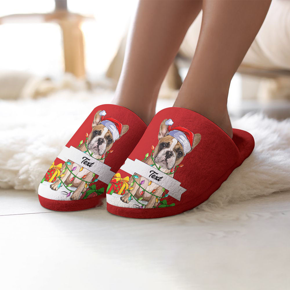 Custom Face And Text Women's and Men's Cotton Slippers Personalized Casual House Shoes Indoor Outdoor Bedroom Slippers Christmas Gift For Pet Lovers