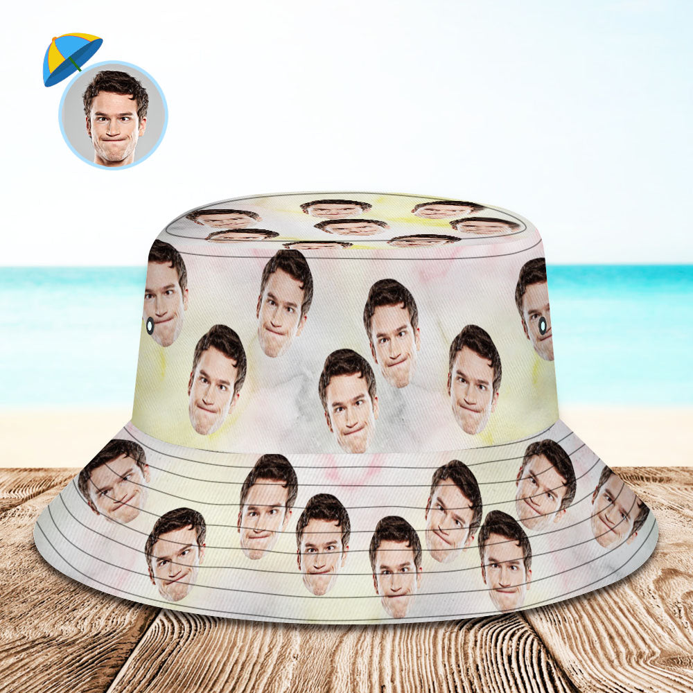 Custom Face Bucket Hat Unisex Personalized Photo Summer Cap Flamingo Pattern Hiking Beach Hats Gift for Lover - Hello Summer