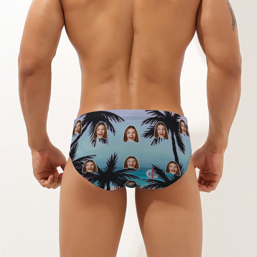 Custom Face Hawaiian Style Men's Swimming Trunks Personalized Tropical Island Triangle Swim Briefs