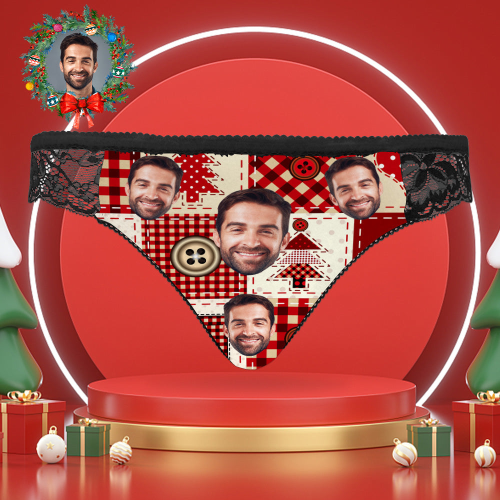 Custom Face Lace Panties Personalized Sexy Women Underwear Santa Claus and Snowman Christmas Gifts