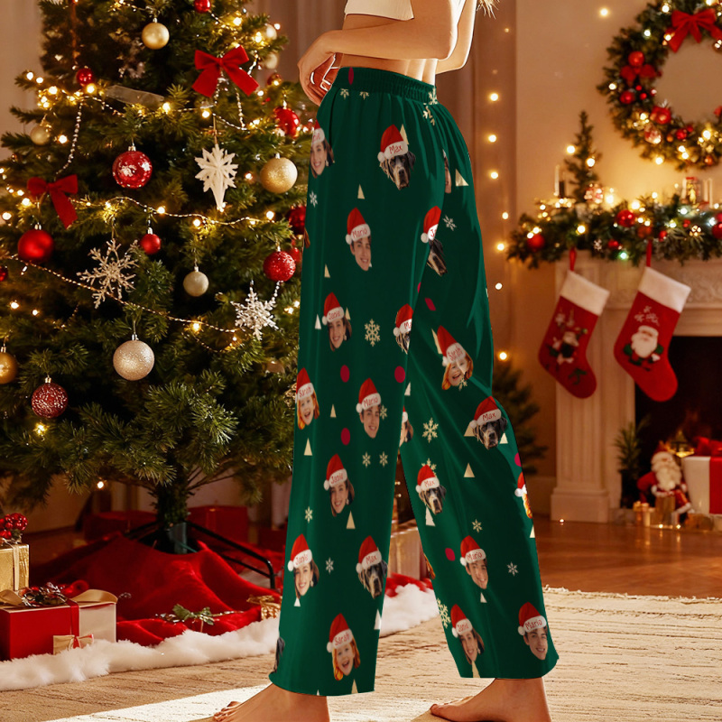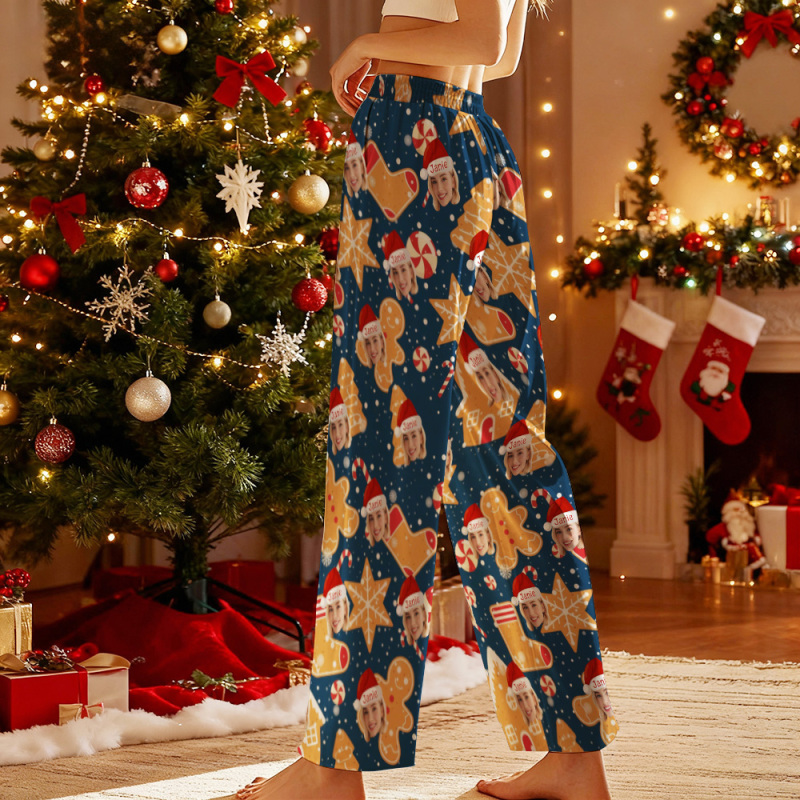 Custom Adult Pajama Pants with Pet Picture & Festive Gingerbread Plaid
