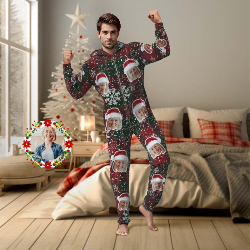 Custom Face Classic Christmas Onesies Pajamas One-Piece Sleepwear Christmas Gift