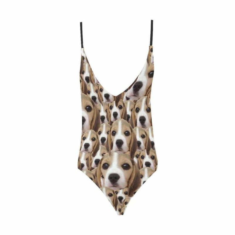 Home / Custom Cute Dog Face V-Neck Women's One Piece Sexy Swimsuit
