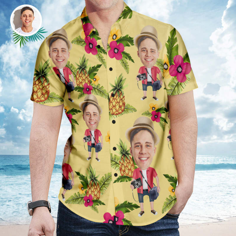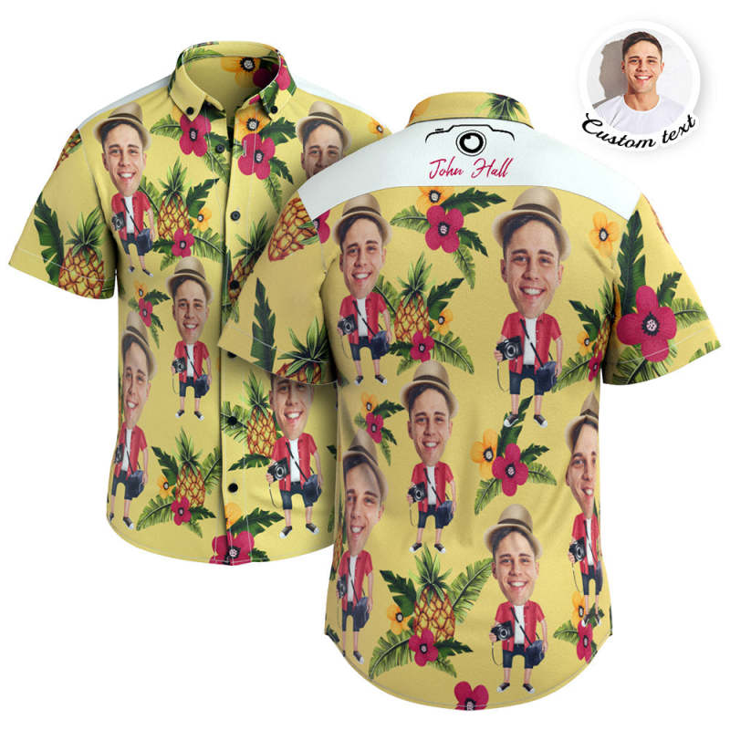 Custom Face And Text Hawaiian Shirt Short Sleeve Shirt Pineapple Beach Summer Photographer Shirts for Men