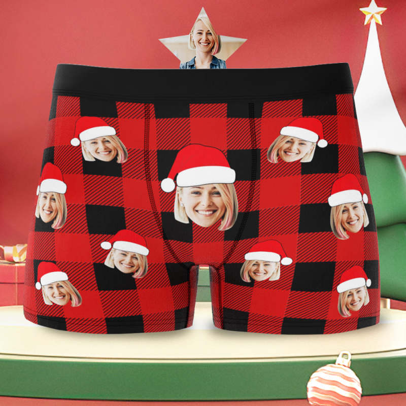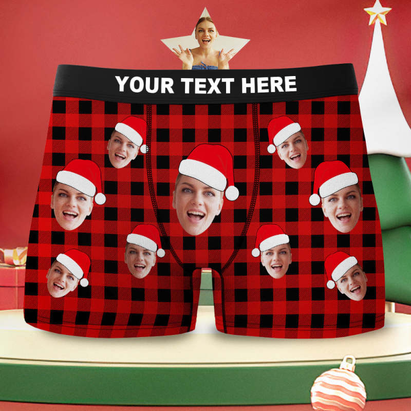 Custom Face Boxer Briefs Personalized Buffalo Plaid Underwear Christmas Gifts for Him