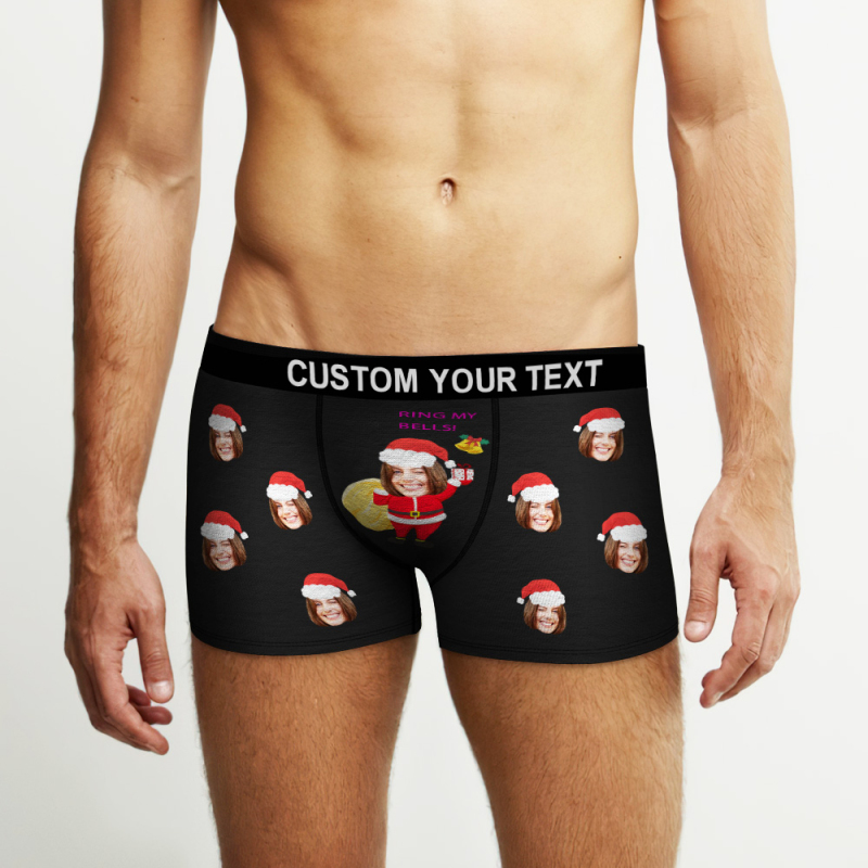 Custom Face Boxers Christmas Briefs Personalized Men's Underwear Funny Santa Claus Ring My Bells