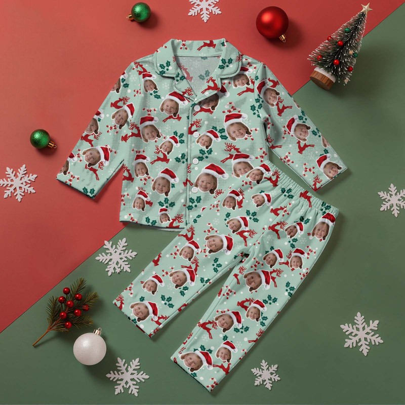 Custom Face Children's Pajamas Kid's Sleepwear Christmas Gifts Family