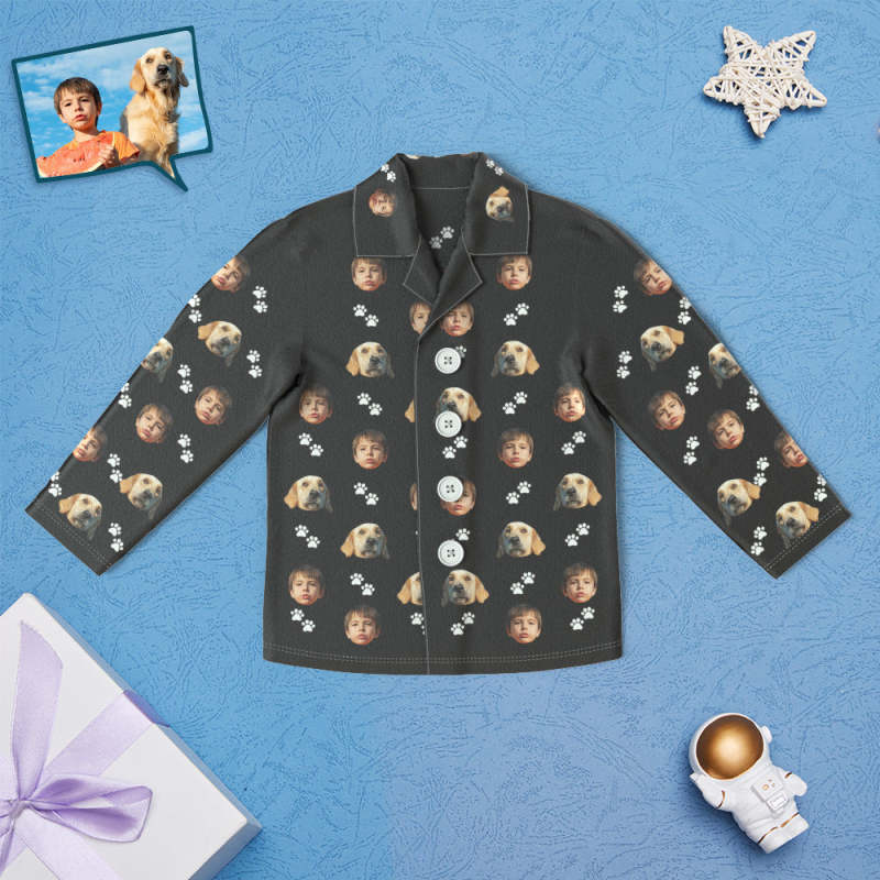 Home / Custom Face Children's Pajamas Personalized Kid's Sleepwear With Pet Dog - Foot Print