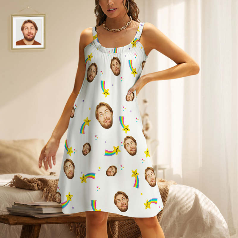 Home / Custom Face Daytime Sleep Dress Personalized Photo Women Long Nightdress Rainbow