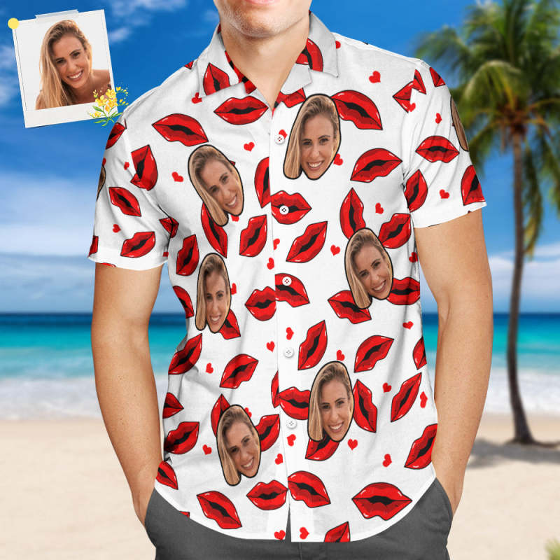 Custom Face Hawaiian Shirt All Over Print Funny Red Lips Personalized Shirt