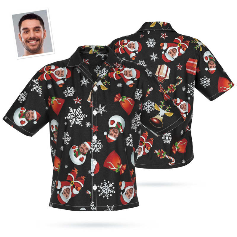 Custom Face Hawaiian Shirt Personalized Women's Photo Shirt Santa Snowman Shirt Christmas Gift
