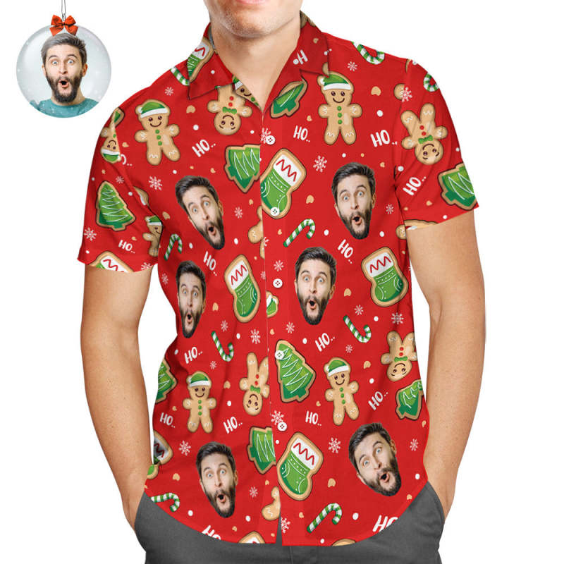 Custom Face Hawaiian Shirts A Cosy Little Men's Christmas Shirts Gift