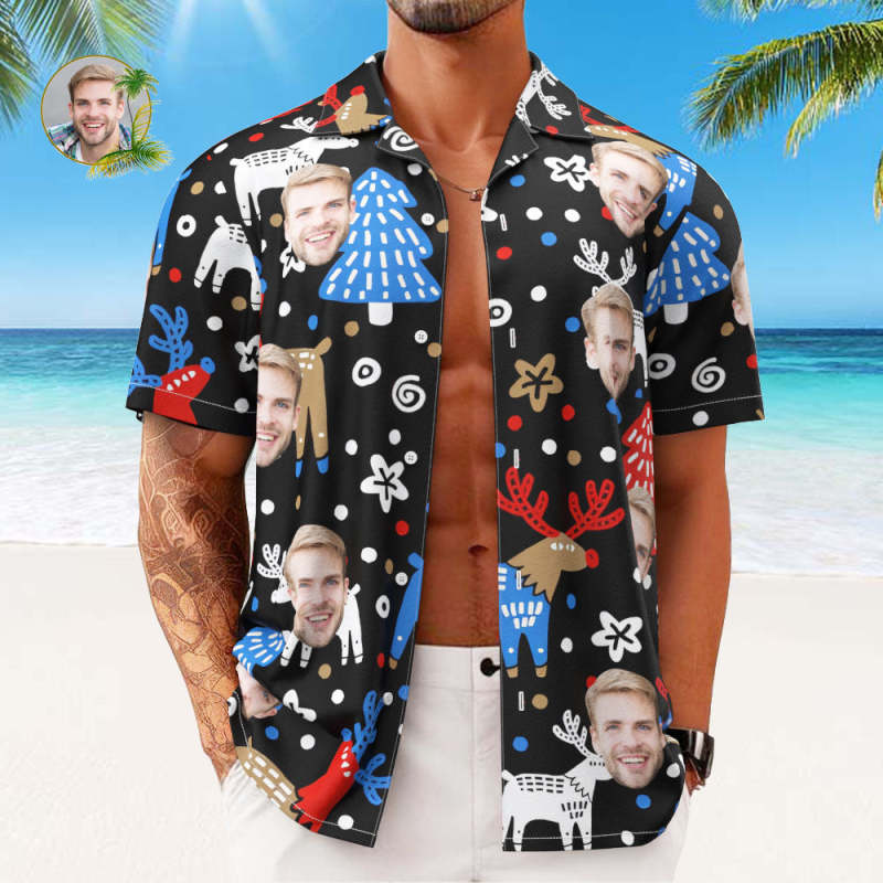 Home / Custom Face Hawaiian Shirts Personalized Photo Gift Men's Christmas Shirts Christmas Reindeer
