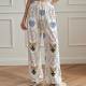 • Matching pants styled with an elastic-drawstring waist.