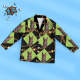 • Matching shirt with notched lapels; button front.