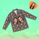 • Matching shirt with notched lapels; button front.