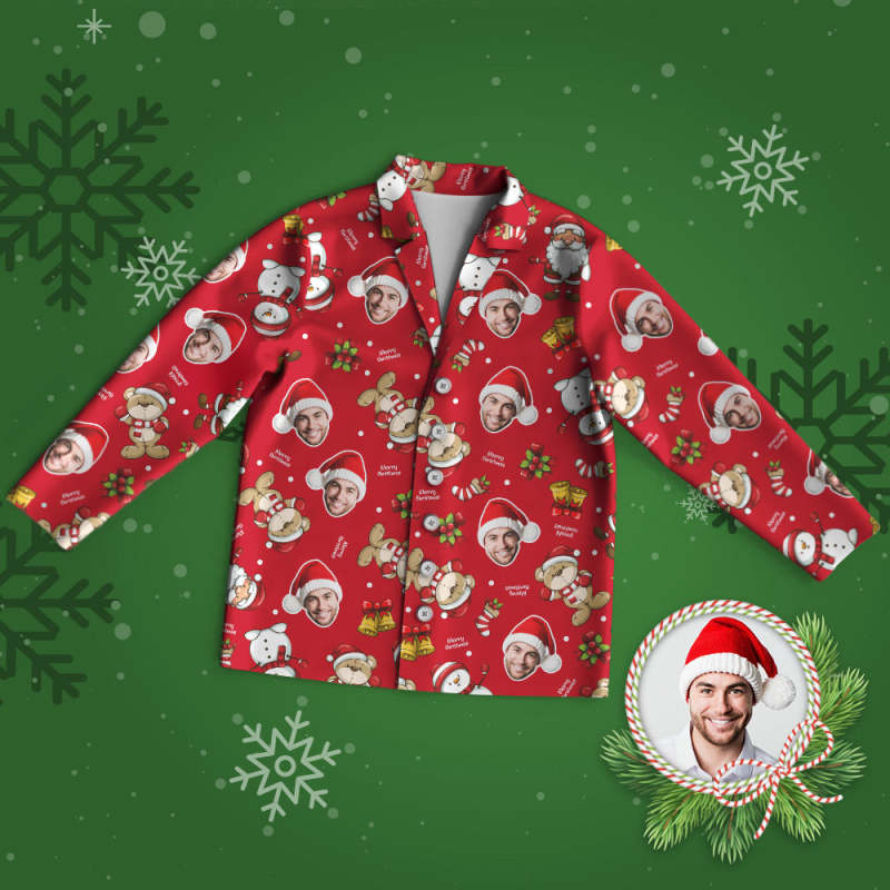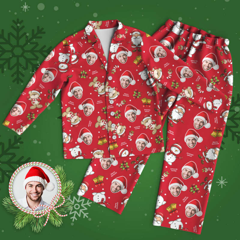 Custom Face Pajama Personalized Red Photo Pajamas Merry Christmas