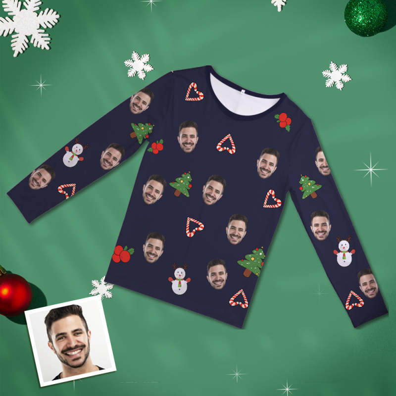 Home / Custom Face Pajamas Personalized Round Neck Long Pajamas For Women - Christmas Snowman