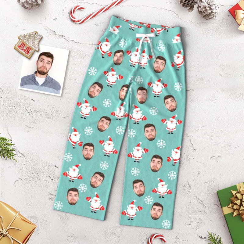 Custom Face Pants Ladie's Loose Wide-leg Pajama Pants Santa Claus Merry Christmas