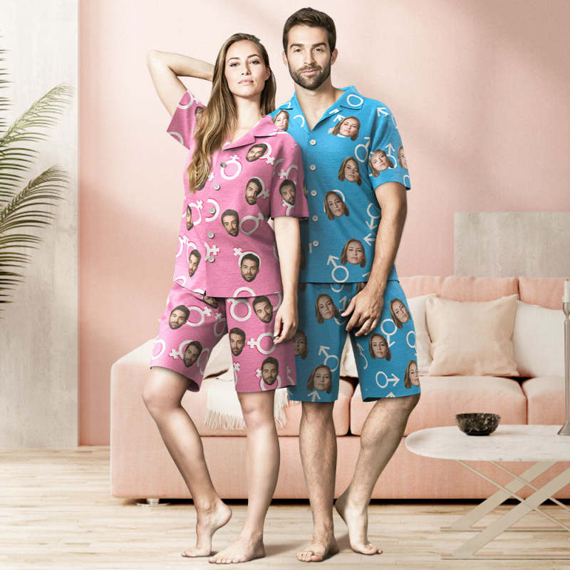 Home / Custom Face Short Pink Sleeved Pajamas Shorts Personalized Photo Sleepwear Women Men Summer Pajamas Valentine's Day Gift