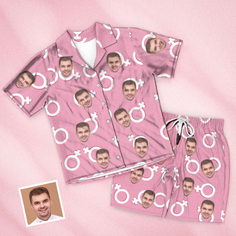 Custom Face Short Pink Sleeved Pajamas Shorts Personalized Photo Sleepwear Women Men Summer Pajamas Valentine's Day Gift