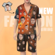 - Matching shirt with notched lapels; button front.