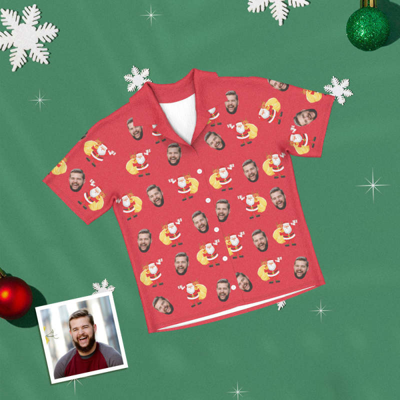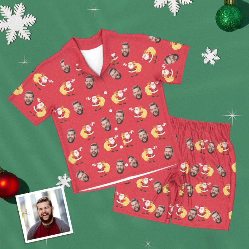 Custom Face Short Sleeved Pajamas Personalised Photo Women Men Sleepwear Christmas Gifts Santa Claus
