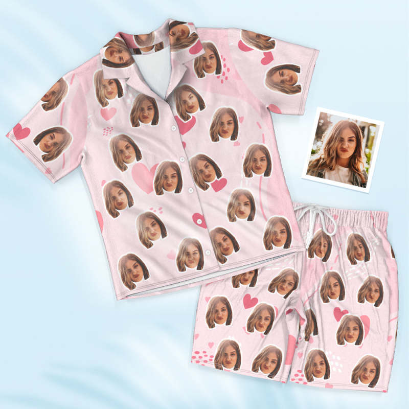 Custom Face Short Sleeved Pajamas Personalised Women's Sleepwear Pants Love Gifts For Her