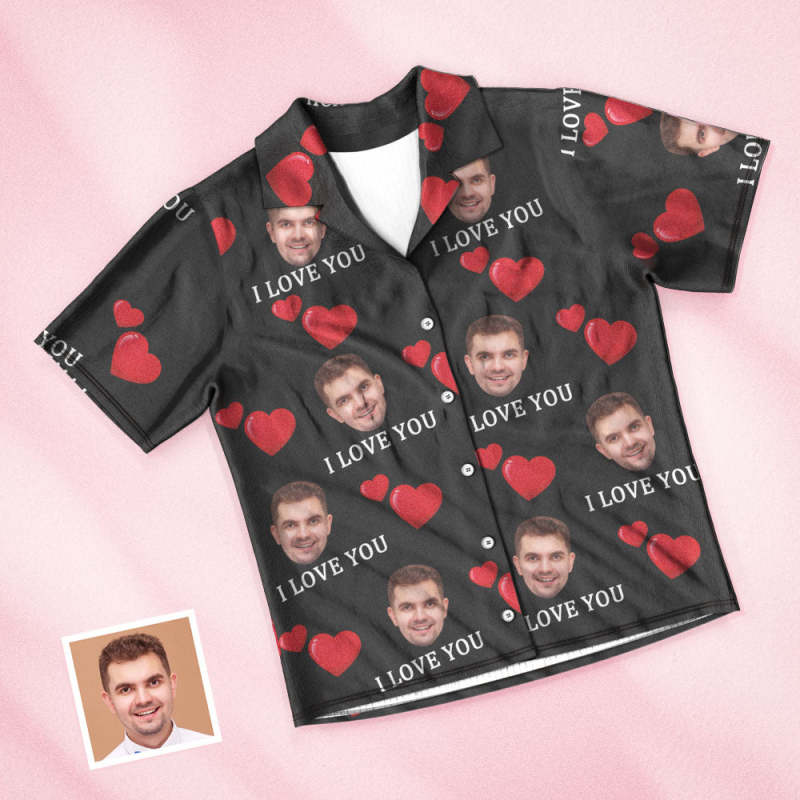 Custom Face Short Sleeved Pajamas Personalized Photo Heart Sleepwear Women Men Summer Pajamas Valentine's Day Gift - I Love You