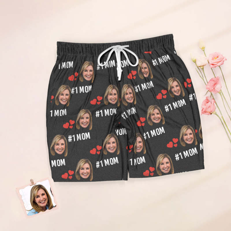 Custom Face Short Sleeved Pajamas Personalized Photo Love Sleepwear Women Summer Black Pajamas #1 MOM