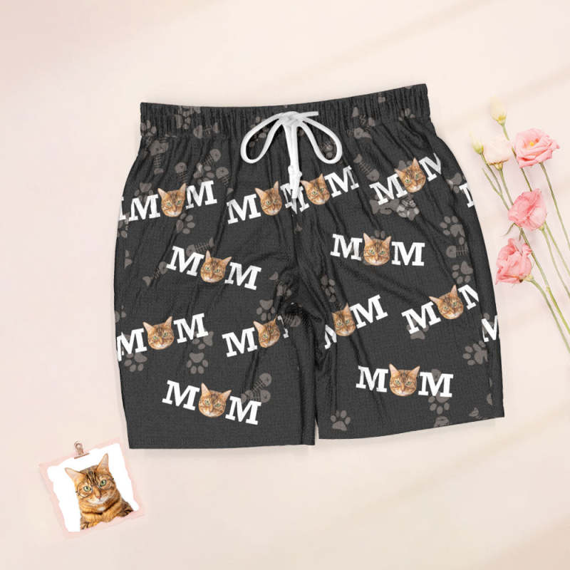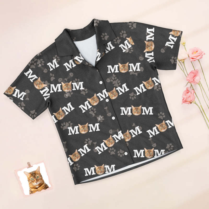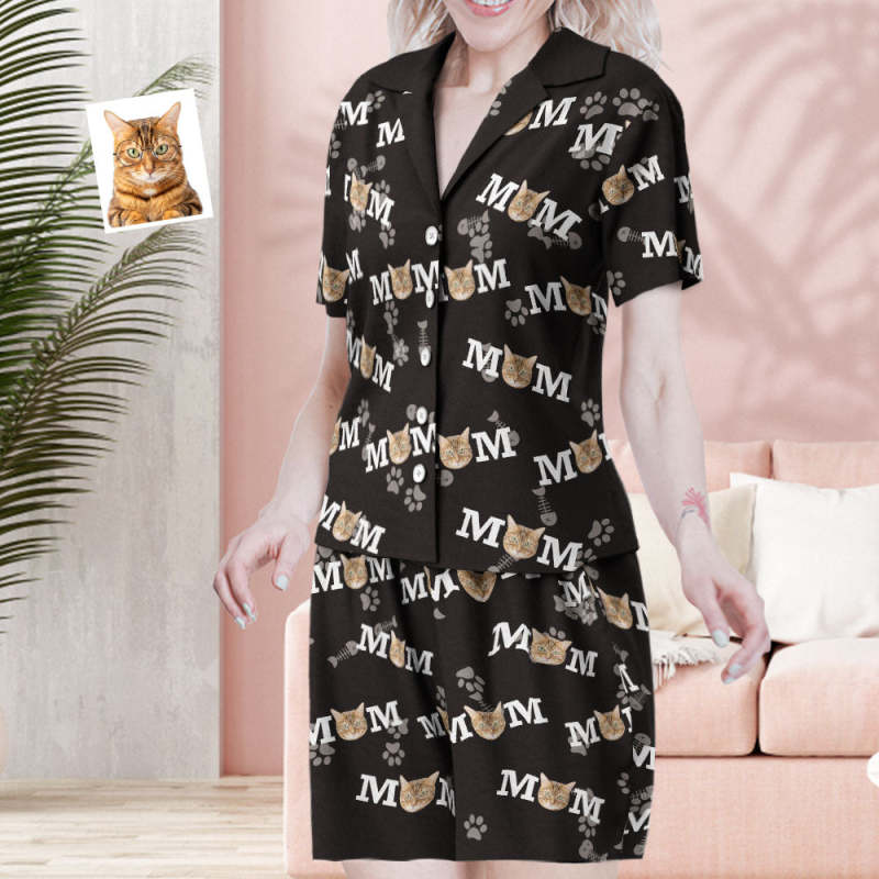 Home / Custom Face Short Sleeved Pajamas Personalized Photo Sleepwear Women Summer Black Pajamas Cat Mom