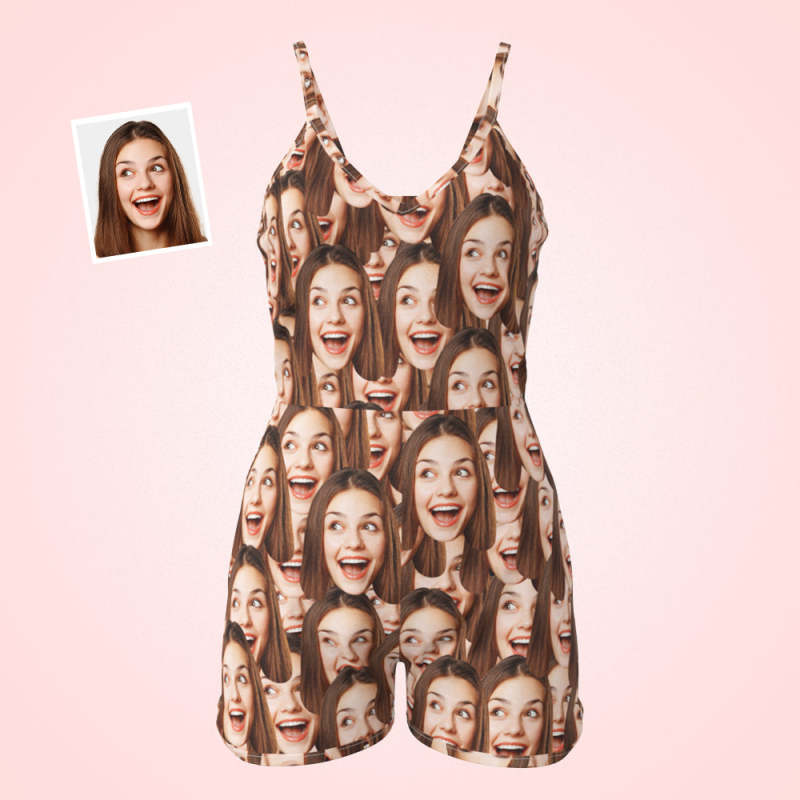 Home / Custom Face Sling Jumpsuit Shorts Personalized Photo Face Mash Sleeveless Pajama For Women