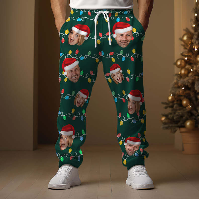 Custom Face Sweatpants Personalized Photo Christmas Family Xmas Leds Golf Pants for Him