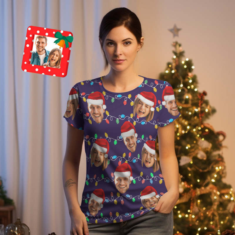Custom Face T-shirt Personalized Personalized Photo Xmas Leds Unisex T-shirts Merry Christmas