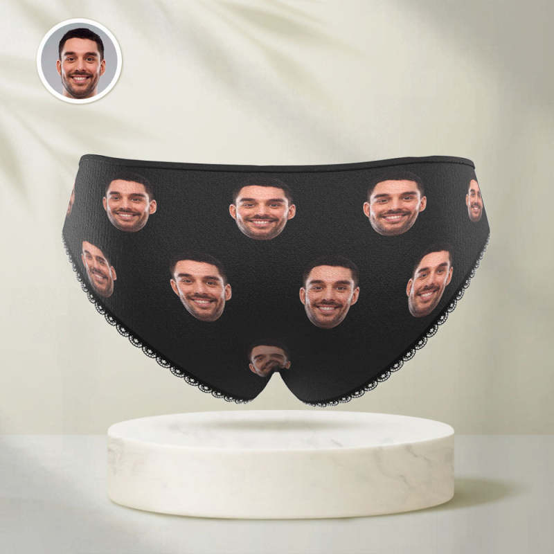 Custom Face Underwear Personalized Women High-Cut Briefs Panties - Black