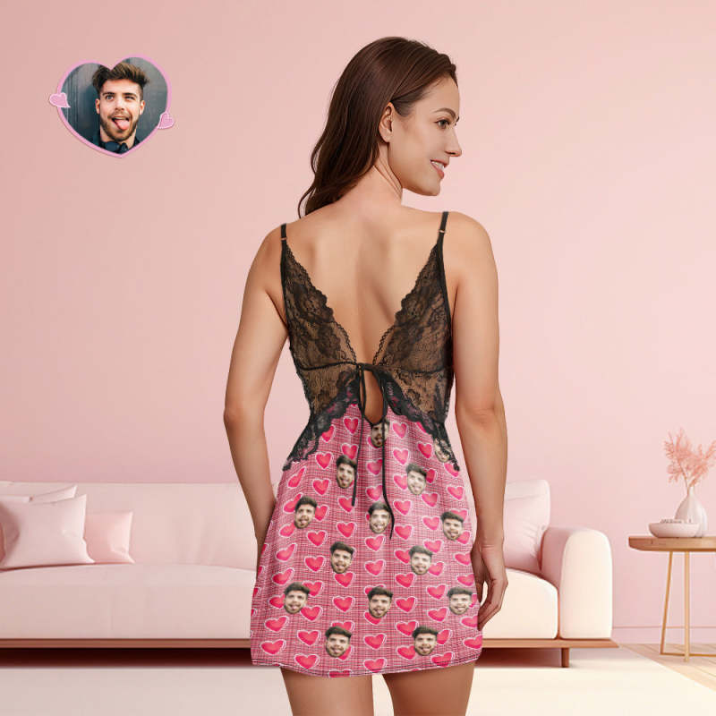 Custom Face Women Lace Sleepwear Romantic Heart Personalized Photo Nightwear Valentine's Day Gift