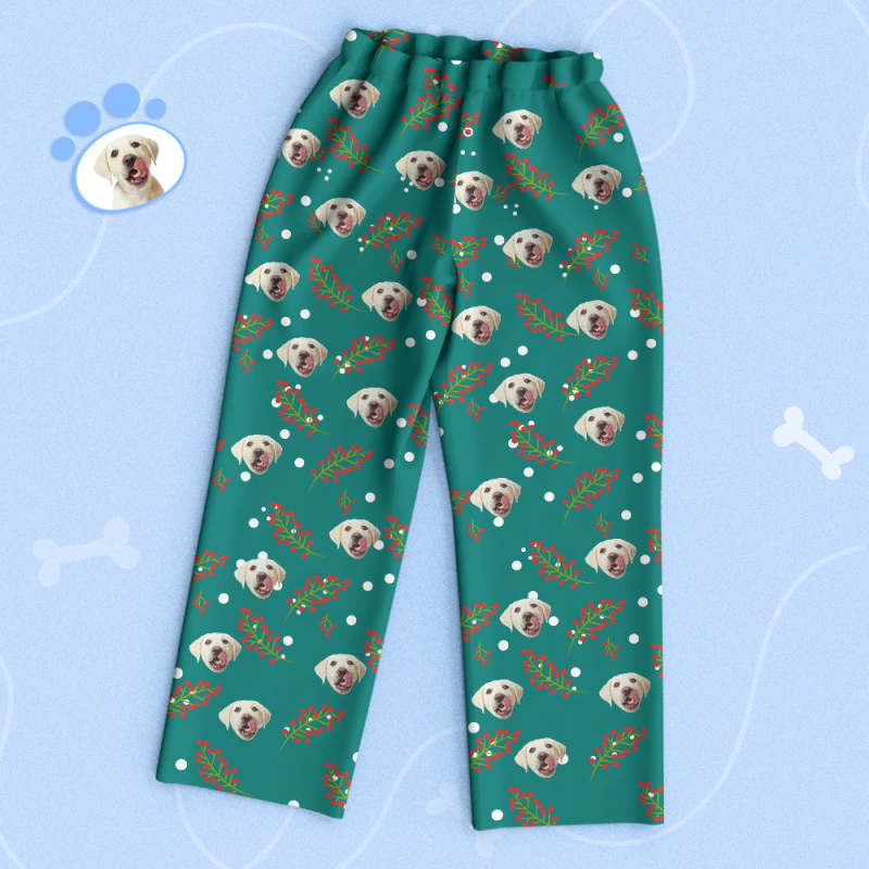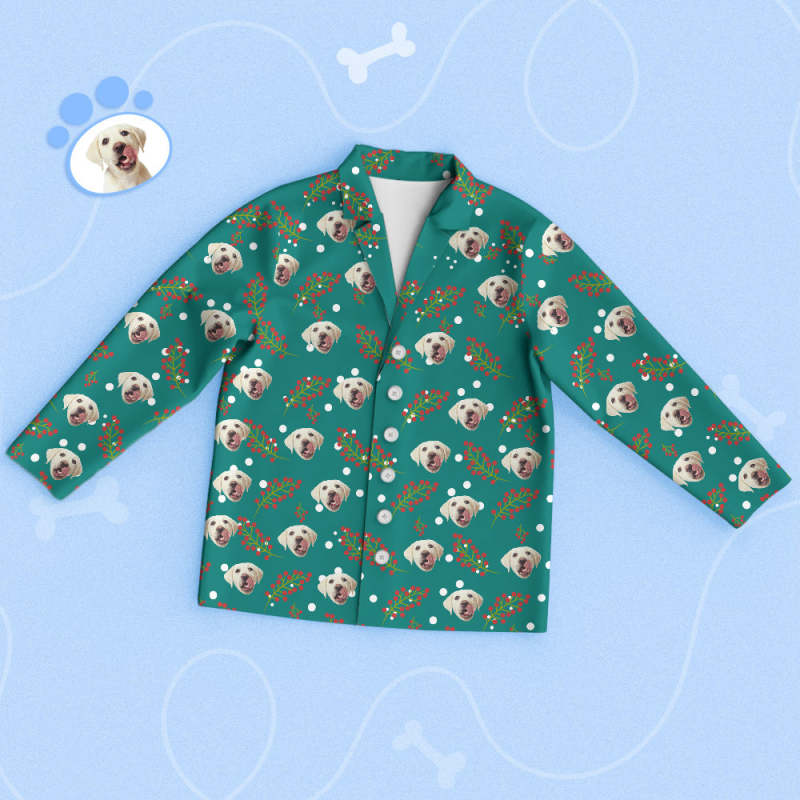 Custom Green Pet Face Pajamas Cherry Pajamas Christmas Gift
