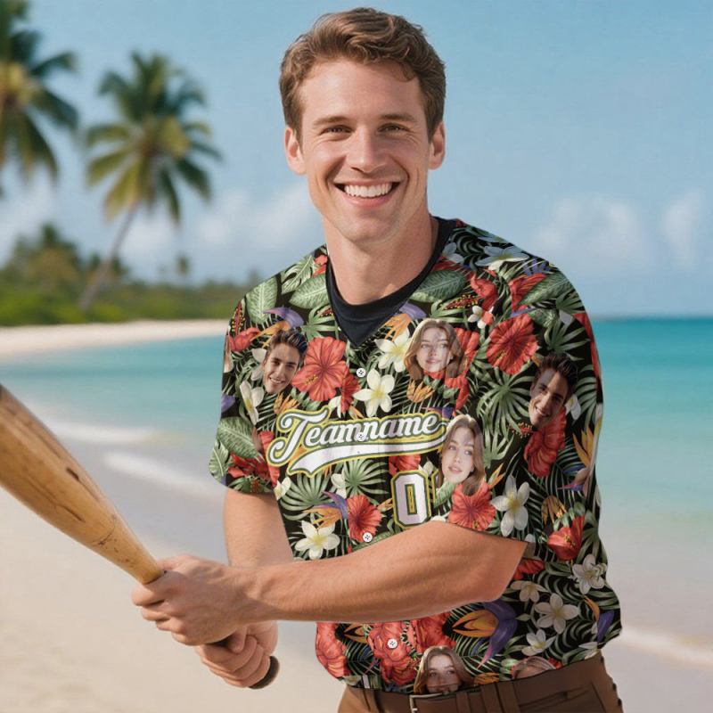 - Custom hawaiian Baseball Jersey shirts face all over print aloha beach shirt for men