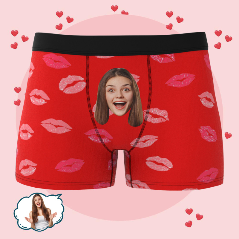 Custom Kiss Face Boxers Popular Boxer Shorts Men's Underwear Valentine's Day Gifts