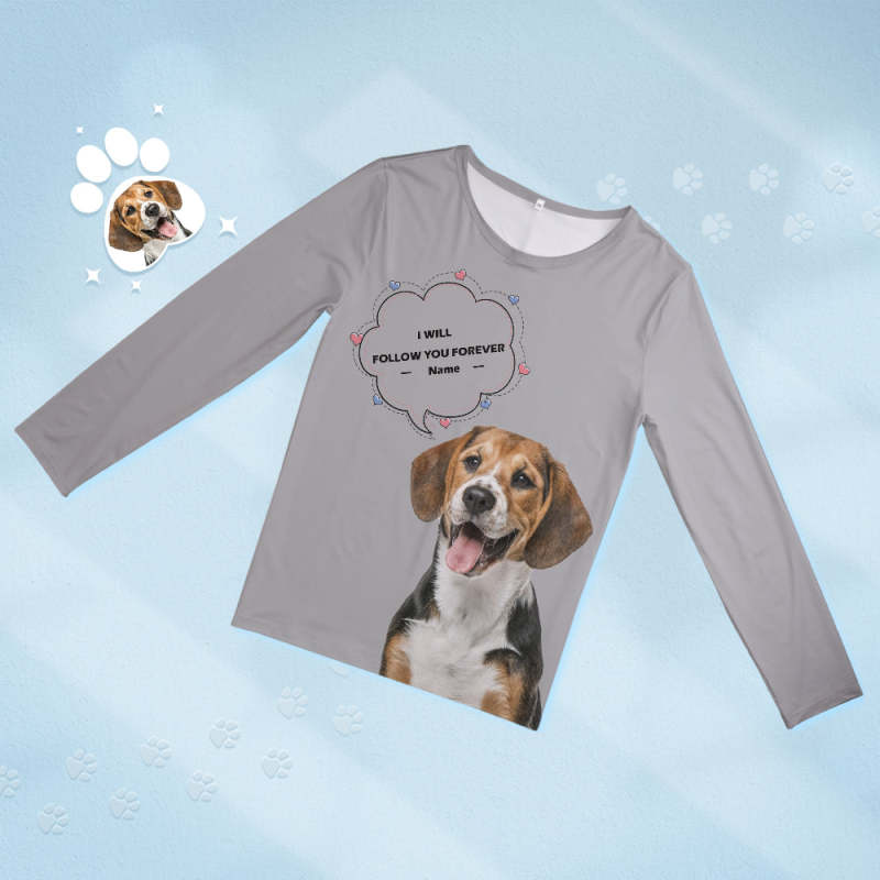 Custom Pet Photo Name Pajamas Personalized Round Neck Dog Cat Lover Pajamas Gift For Women