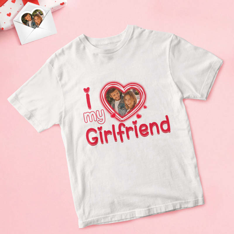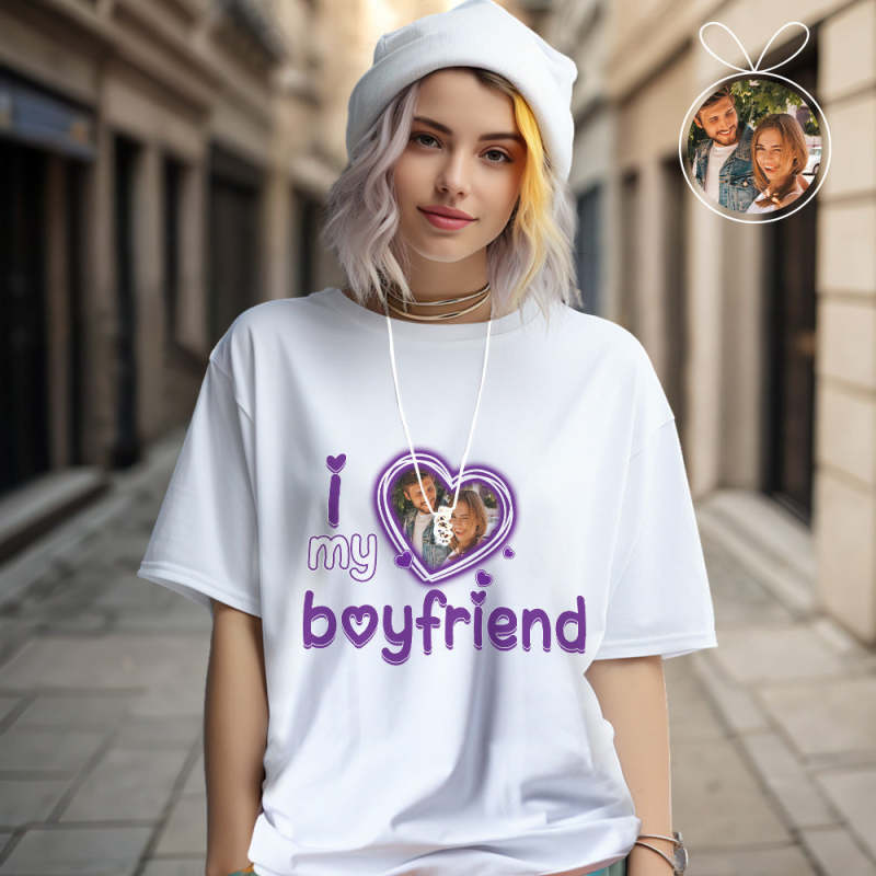 Custom Photo and Text Couple Shirt Gift For Couple Husband And Wife-I Love My Boyfriend