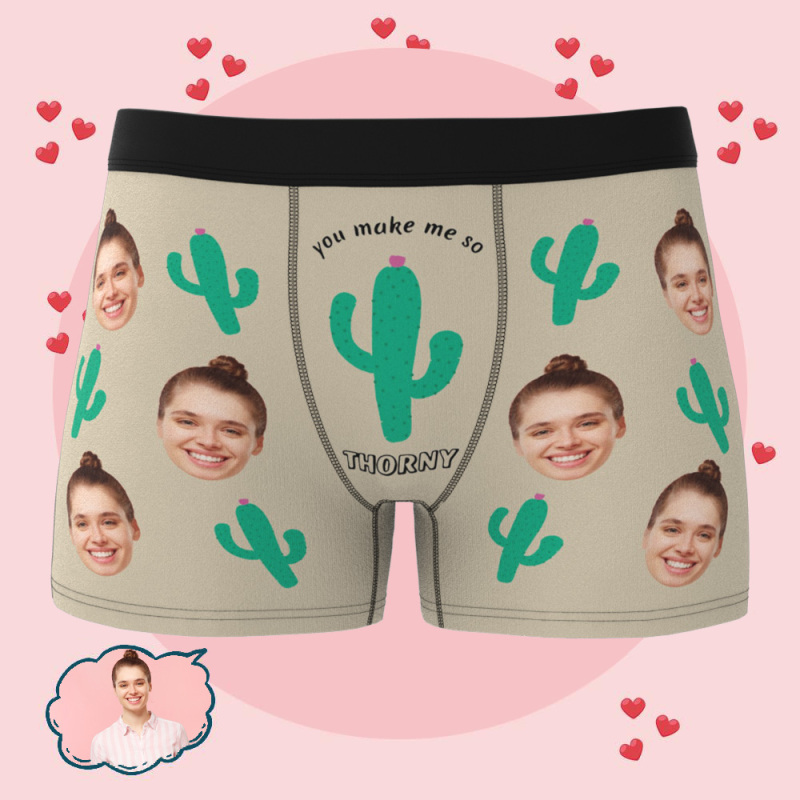 Custom Photo Boxers Men's Boxer With Her Faces Personalized Cactus Underwear for Men Valentine's Day Gift