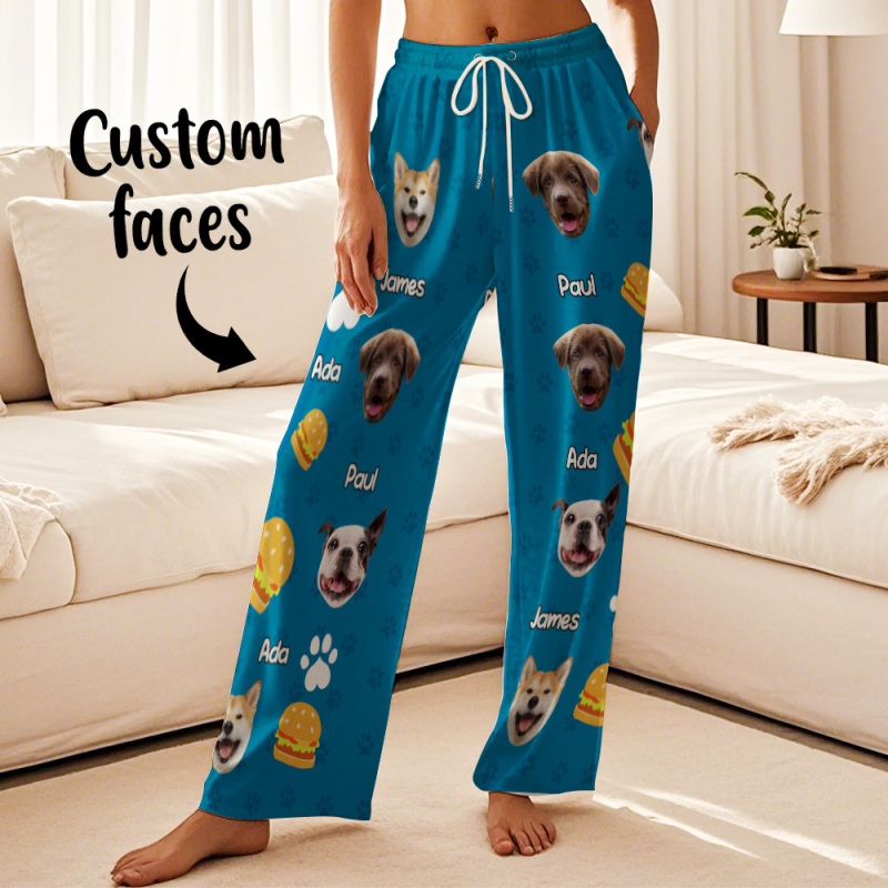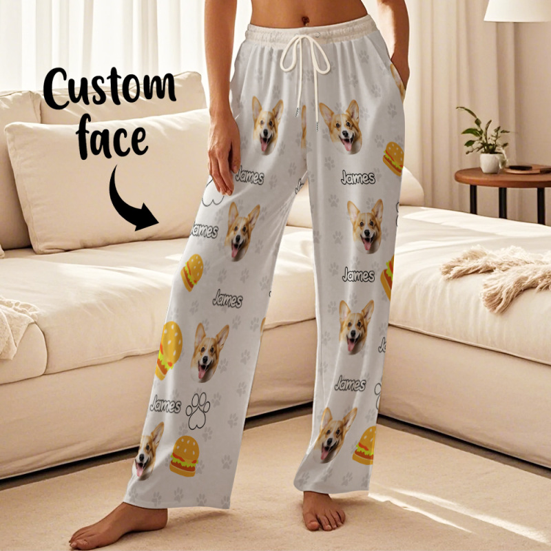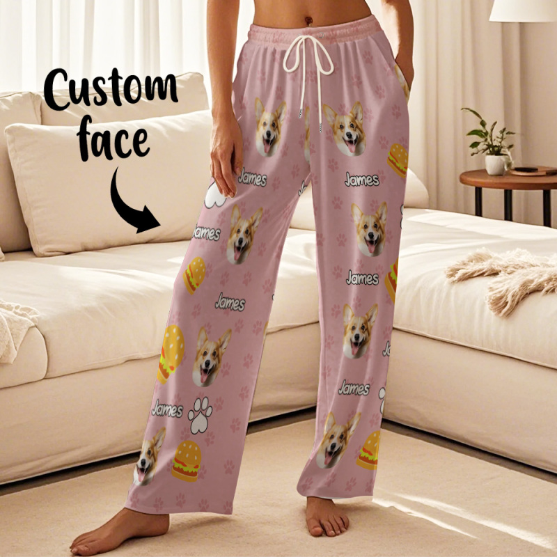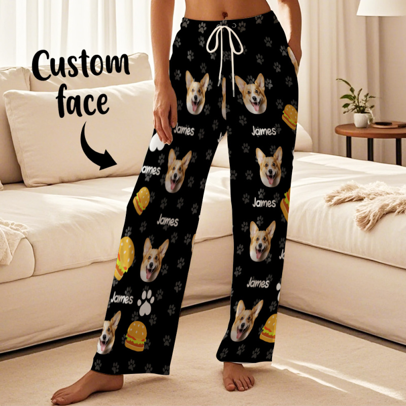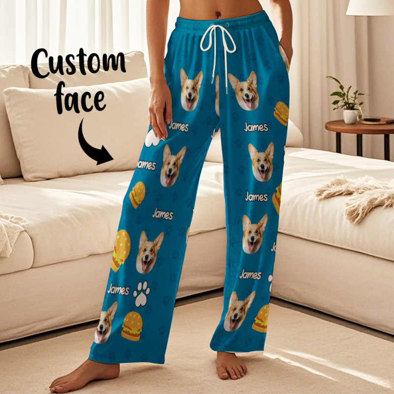 Custom Photo Funny Dog Cat Face Pajamas Pants Personalized Photo Bottoms Pet Lovers Pajamas