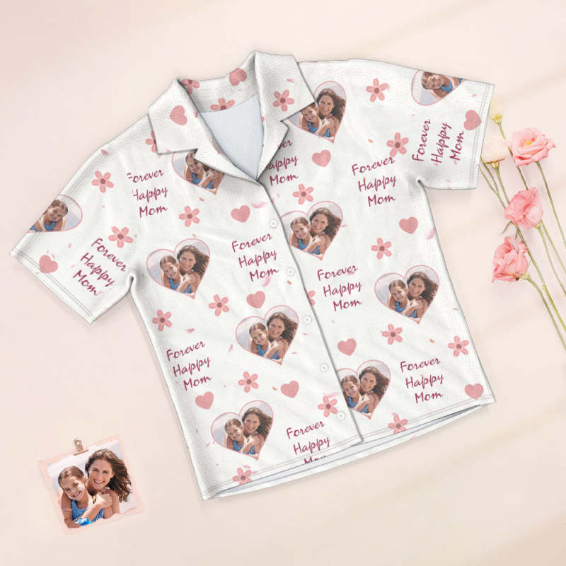 Home / Custom Photo Short Sleeved Pajamas Personalized Sleepwear Women Summer Pajamas Forever Happy Mom