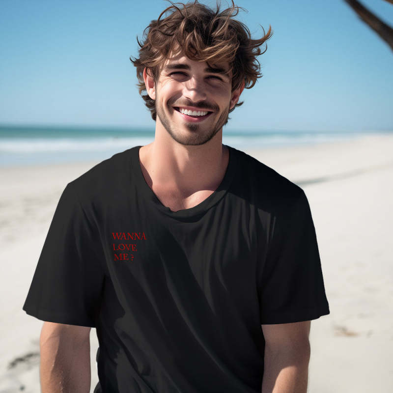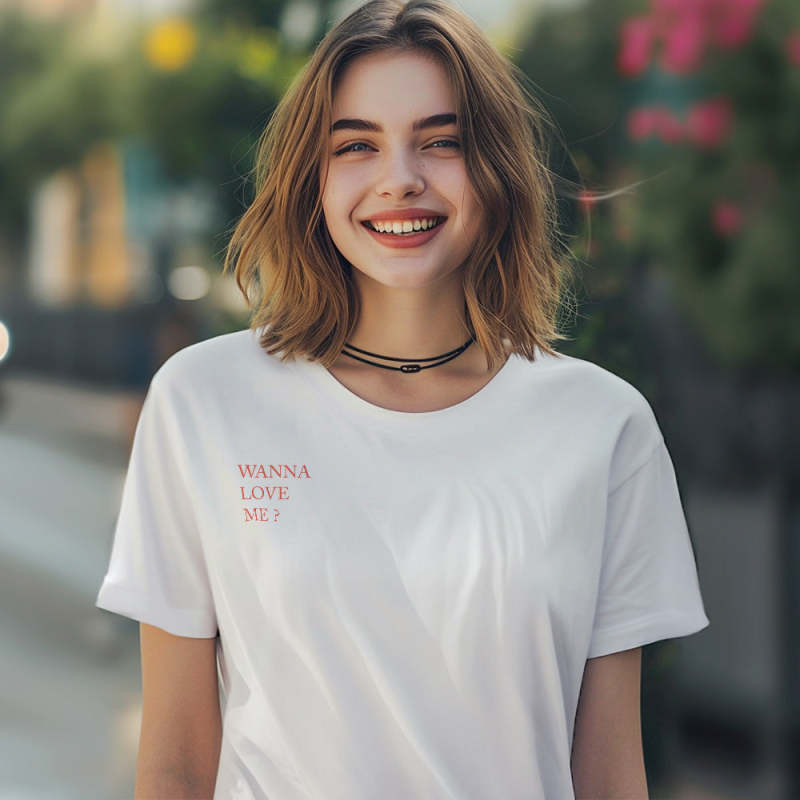 Custom QR Code T-shirt Personalized Social Connection Shirt with Text WANNA LOVE ME?
