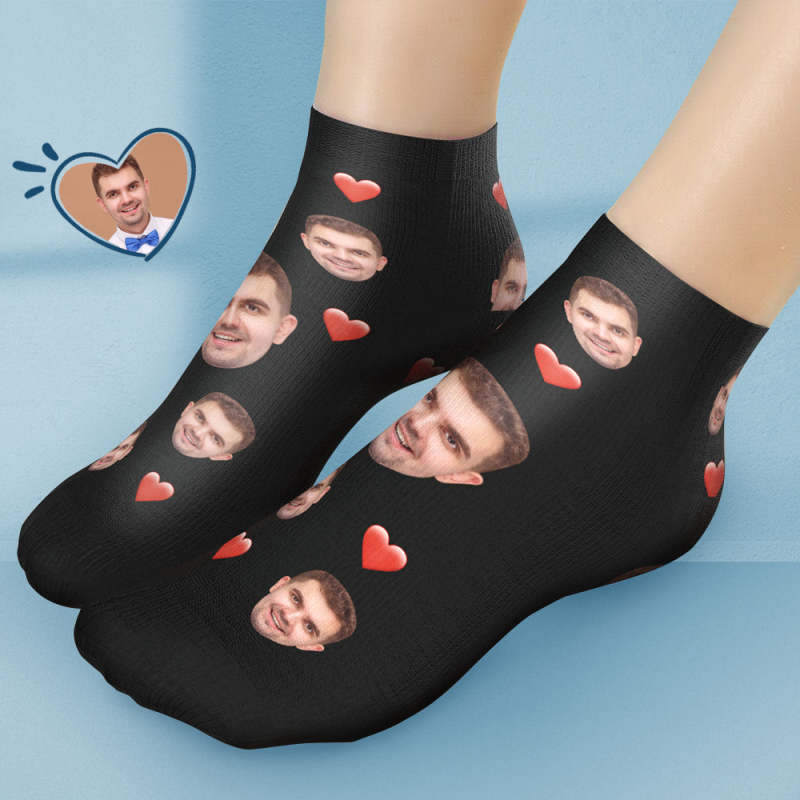 Custom Short Face Socks Personalised Photo Ankle Socks Summer Gifts - Heart