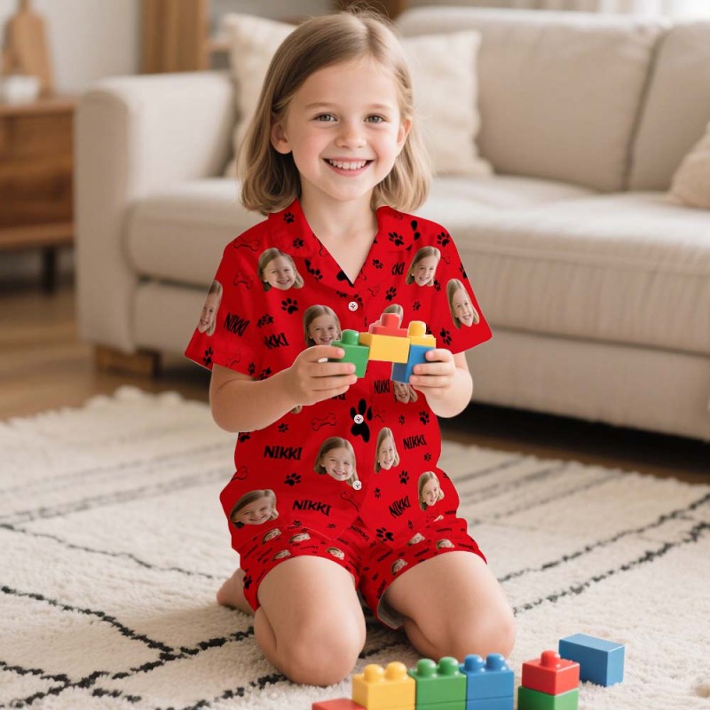Custom Short Pajamas with Face and Name,Customized Pajama Set For Child,Personalized Short Sleeve Family Pajama Set