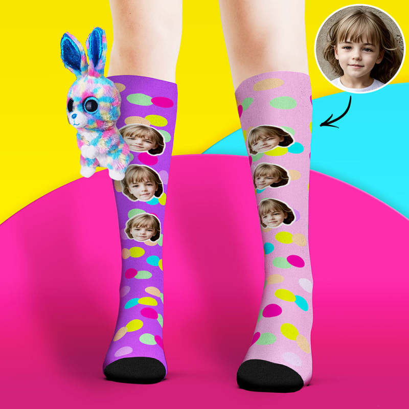 Custom Socks Knee High Face Socks Colorful Polka Dot Rabbit Doll Socks