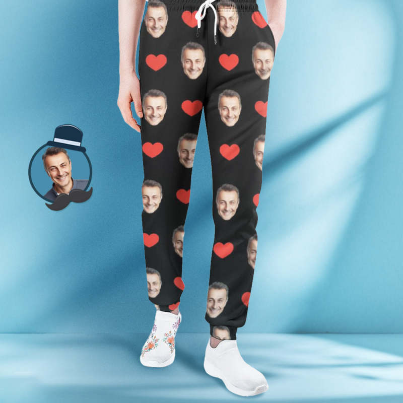Custom Sweatpants Unisex Joggers with Face Heart Pattern