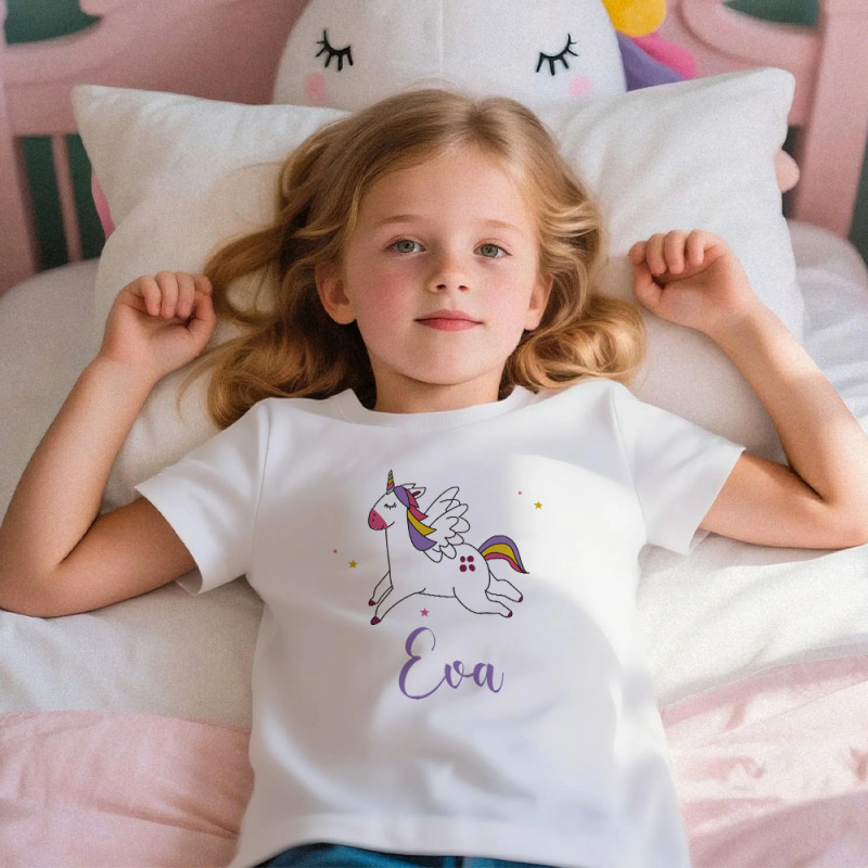 Make bedtime magical with this adorable two-piece unicorn pajama set designed especially for little girls. Crafted from soft, breathable modal fabric, it feels gentle against the skin-perfect for all-night comfort or cozy lounging at home. The short-sleeve top and matching shorts are just right for warmer nights or indoor cuddles.